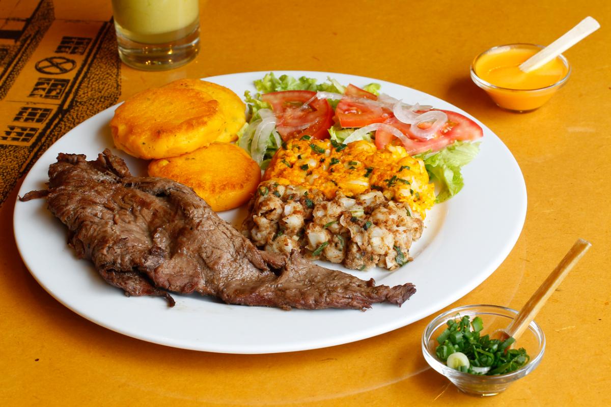 Chumales or humitas made of ground young corn, seasoned with beaten egg, butter and possibly cheese, wrapped in corn husk, and steamed, are the complement to this great dish. We finish this feast with the black cake of Holy Thursday, one of the oldest recipes, which supposedly comes from the Colonial era, made from rice flour, brown sugar, and butter.